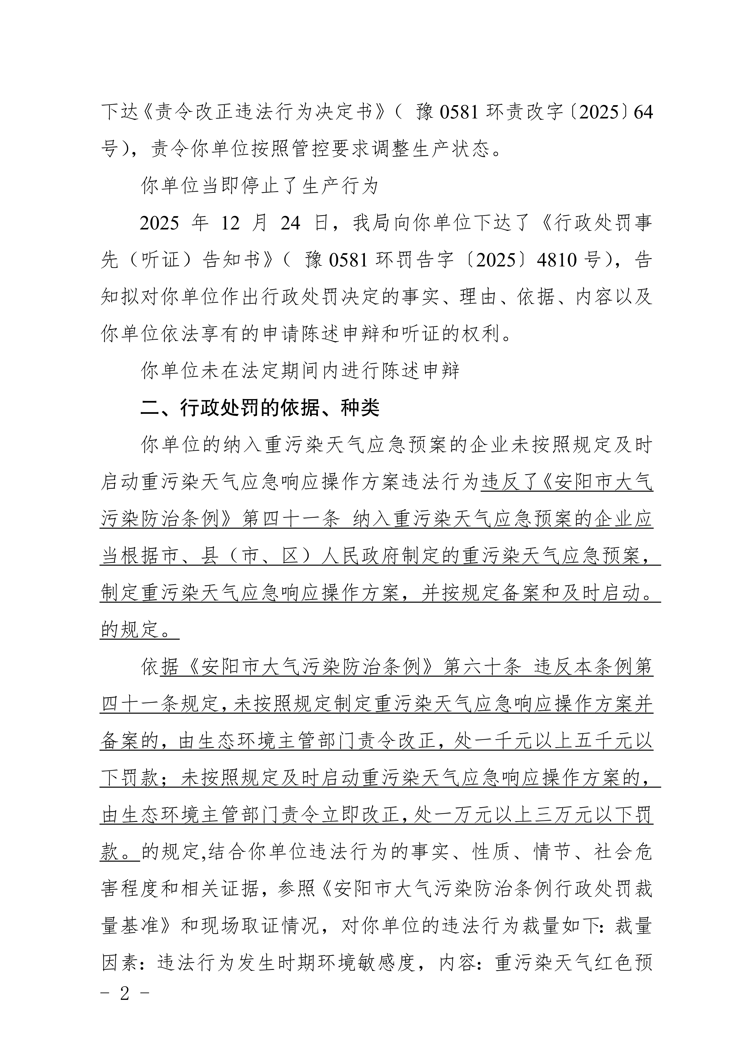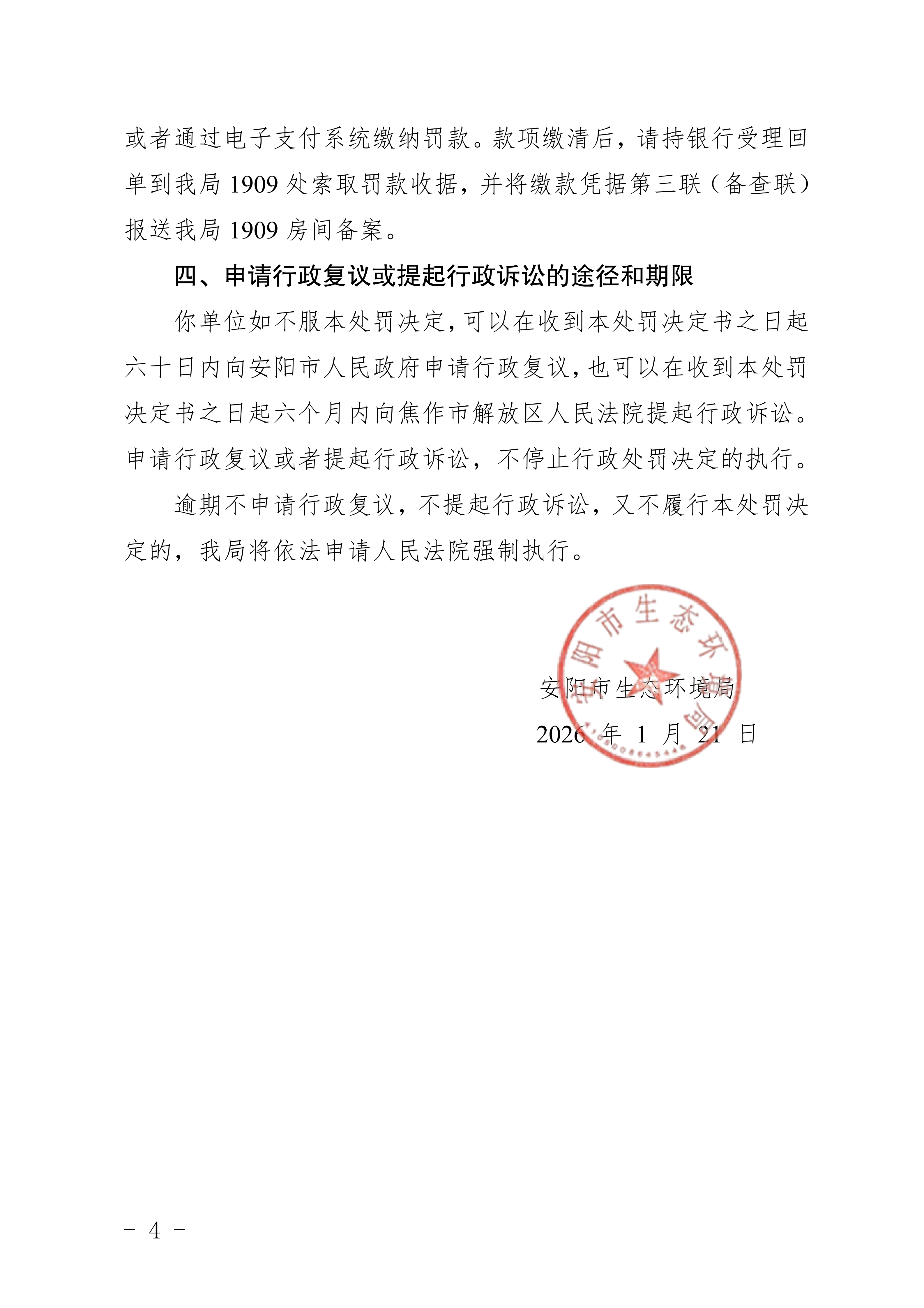 安阳市生态环境局林州分局行政处罚决定书