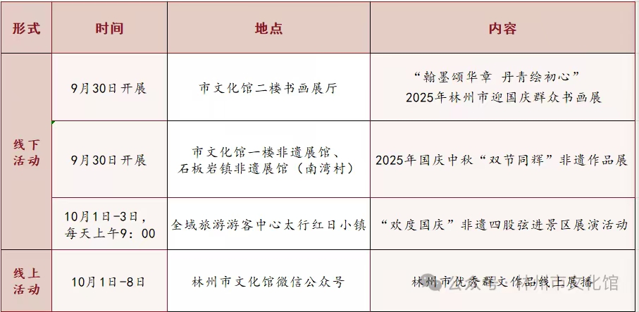 活动预告| 林州市文化馆2025年国庆中秋假期文化活动安排