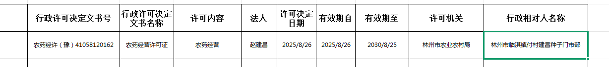 林州市农业农村局行政许可公示