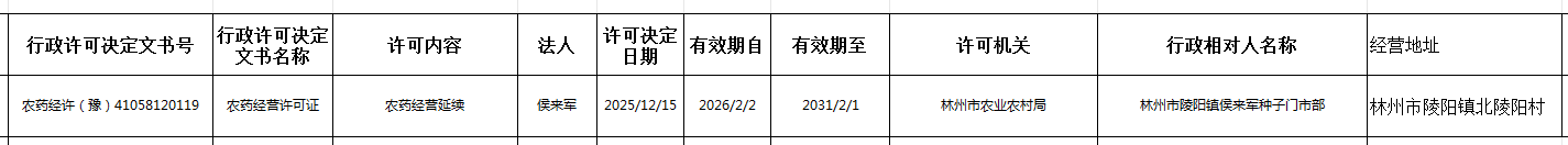 林州市农业农村局行政许可公示