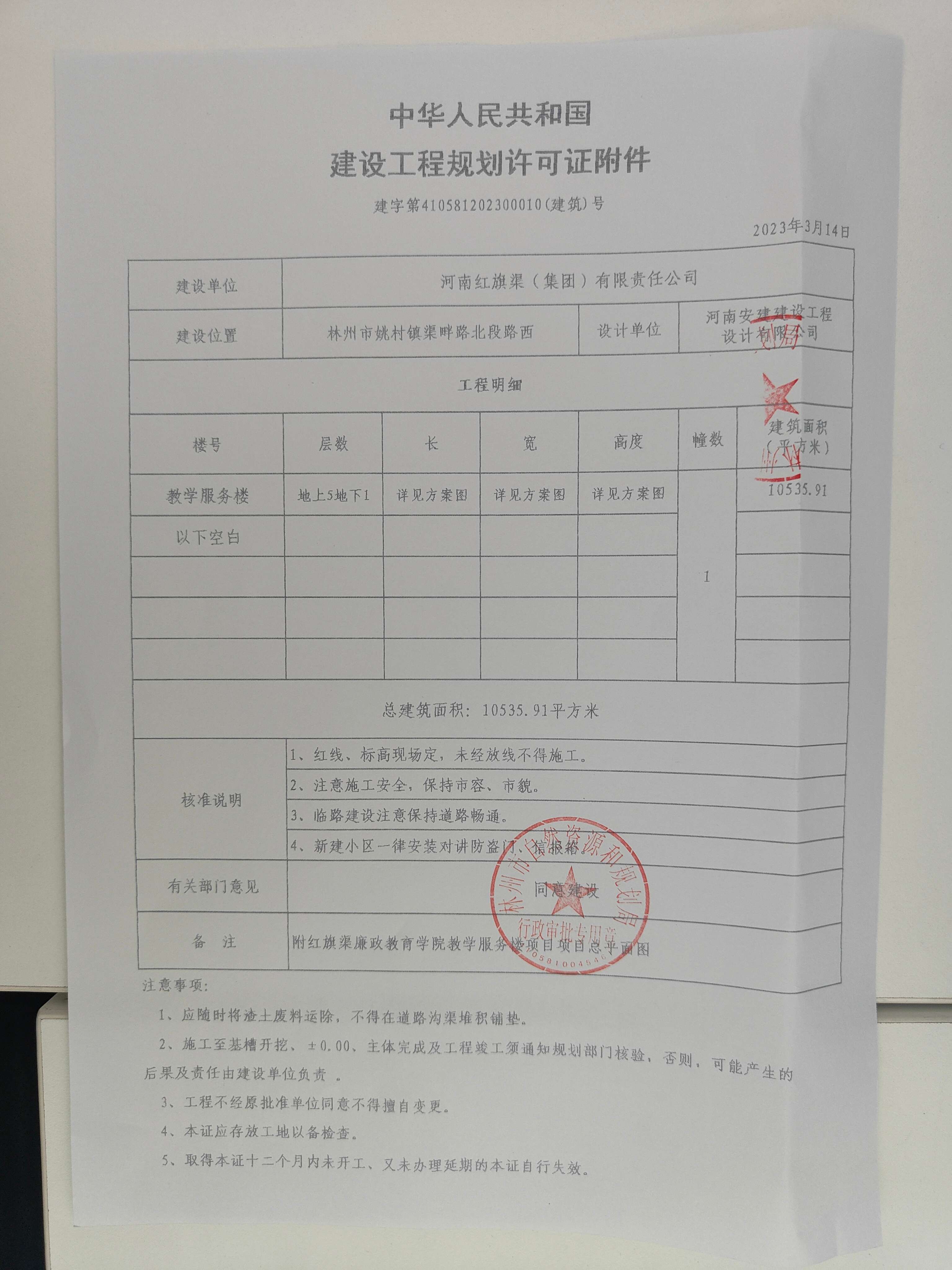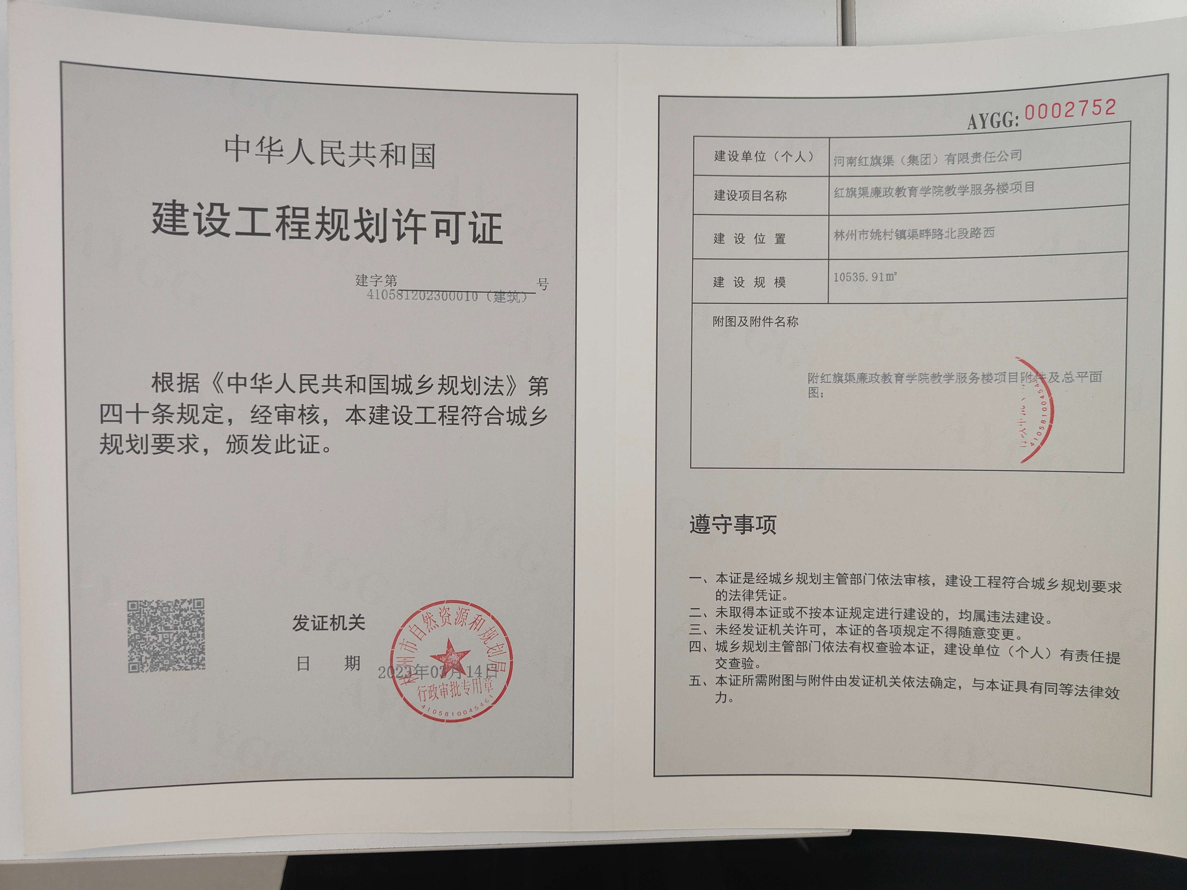 河南红旗渠(集团)有限责任公司红旗渠廉政教育学院教学服务楼项目批后公告