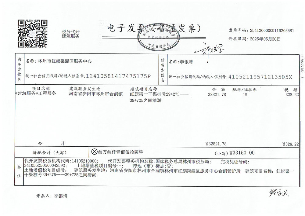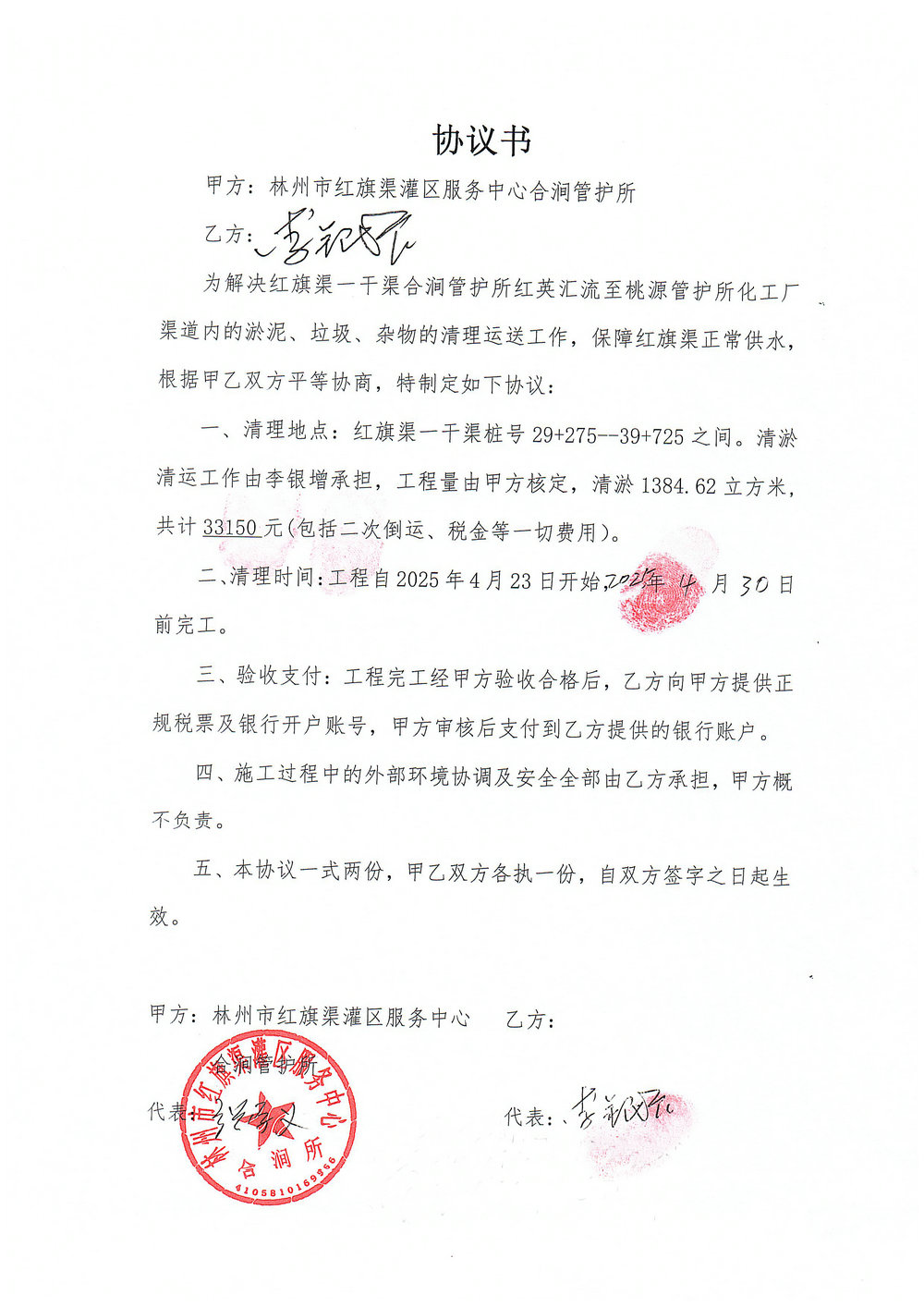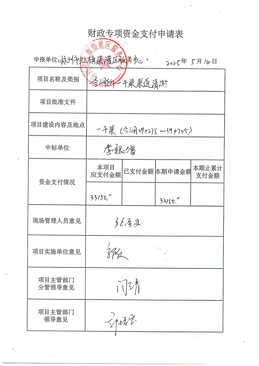 林州市红旗渠灌区服务中心合涧所一干渠渠道清淤支付公示