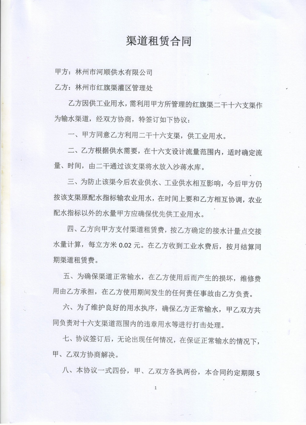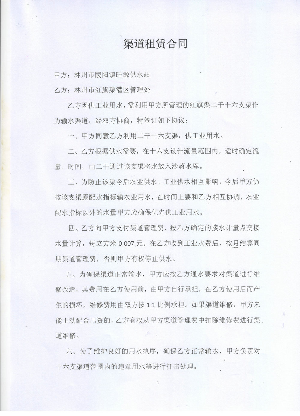 林州市红旗渠灌区服务中心渠道租赁费支付公示