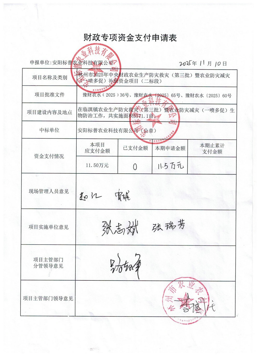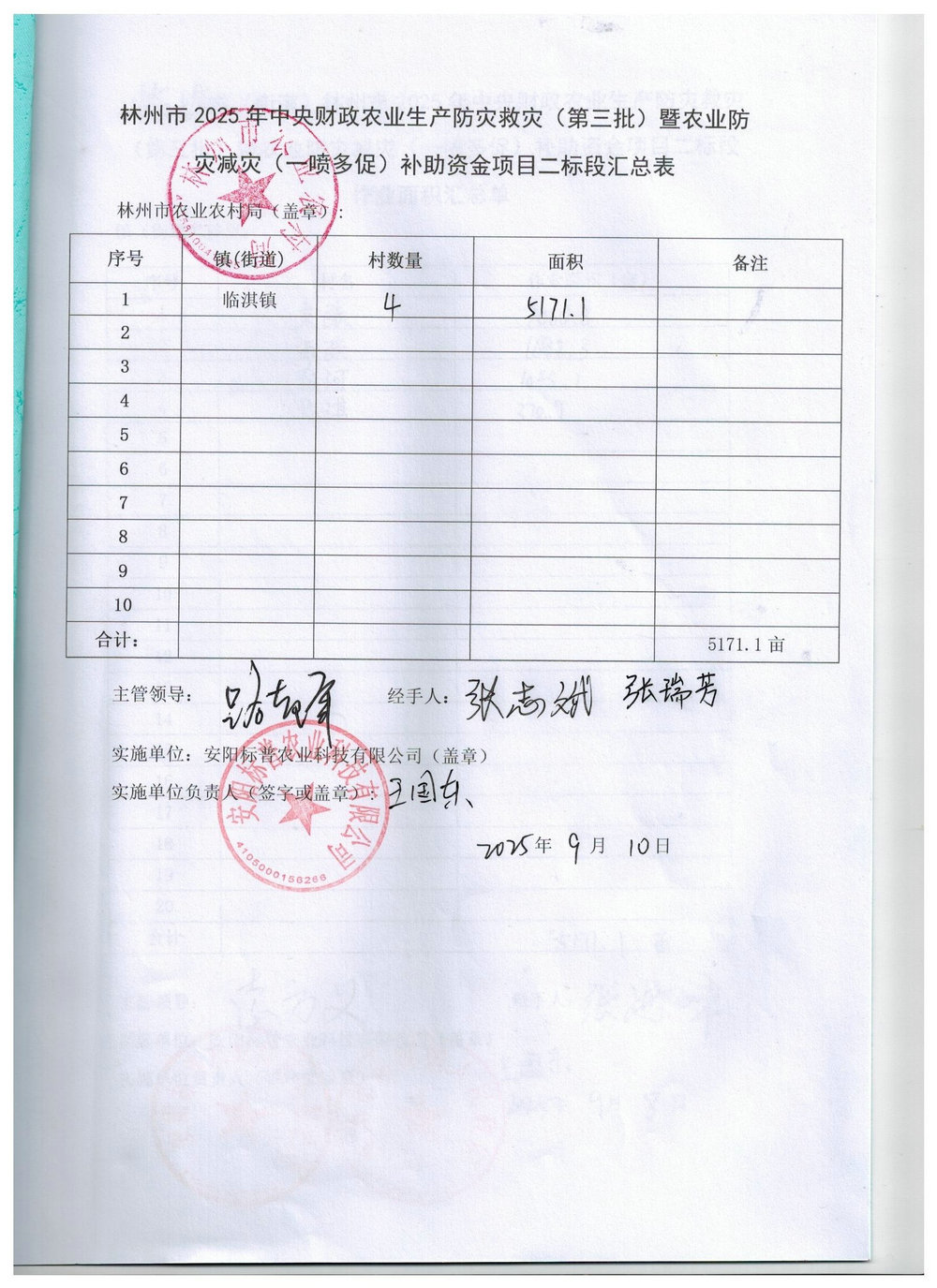 林州市2025年中央财政农业生产防灾救灾(第三批)暨农业防灾减灾(一喷多促)补助资金项目(二标段)支付公示