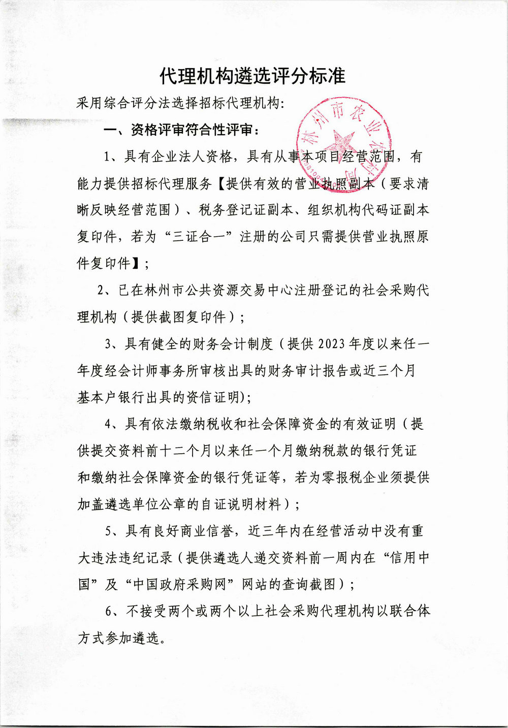 林州市农业农村局关于公开遴选代理机构入库的公告