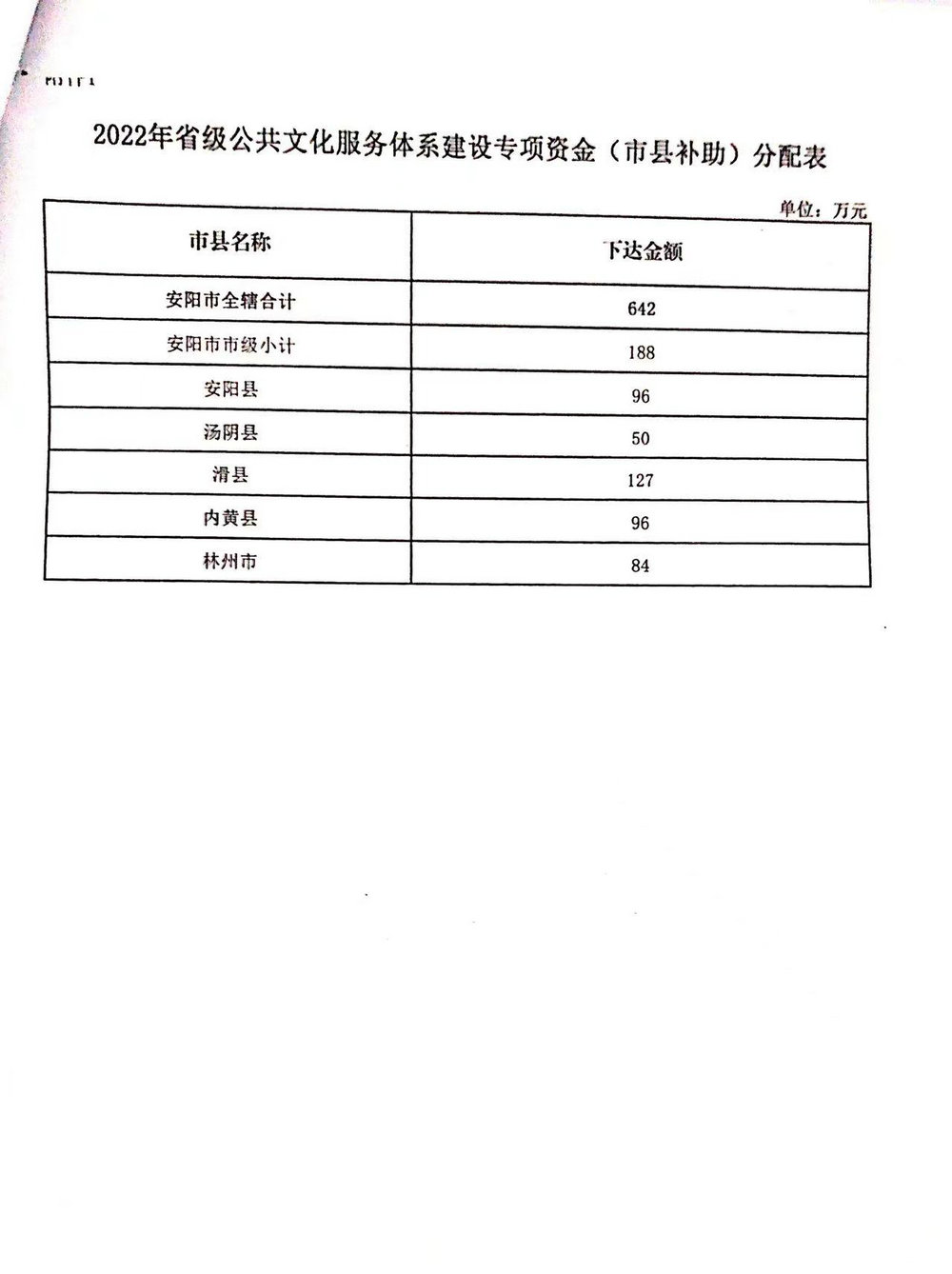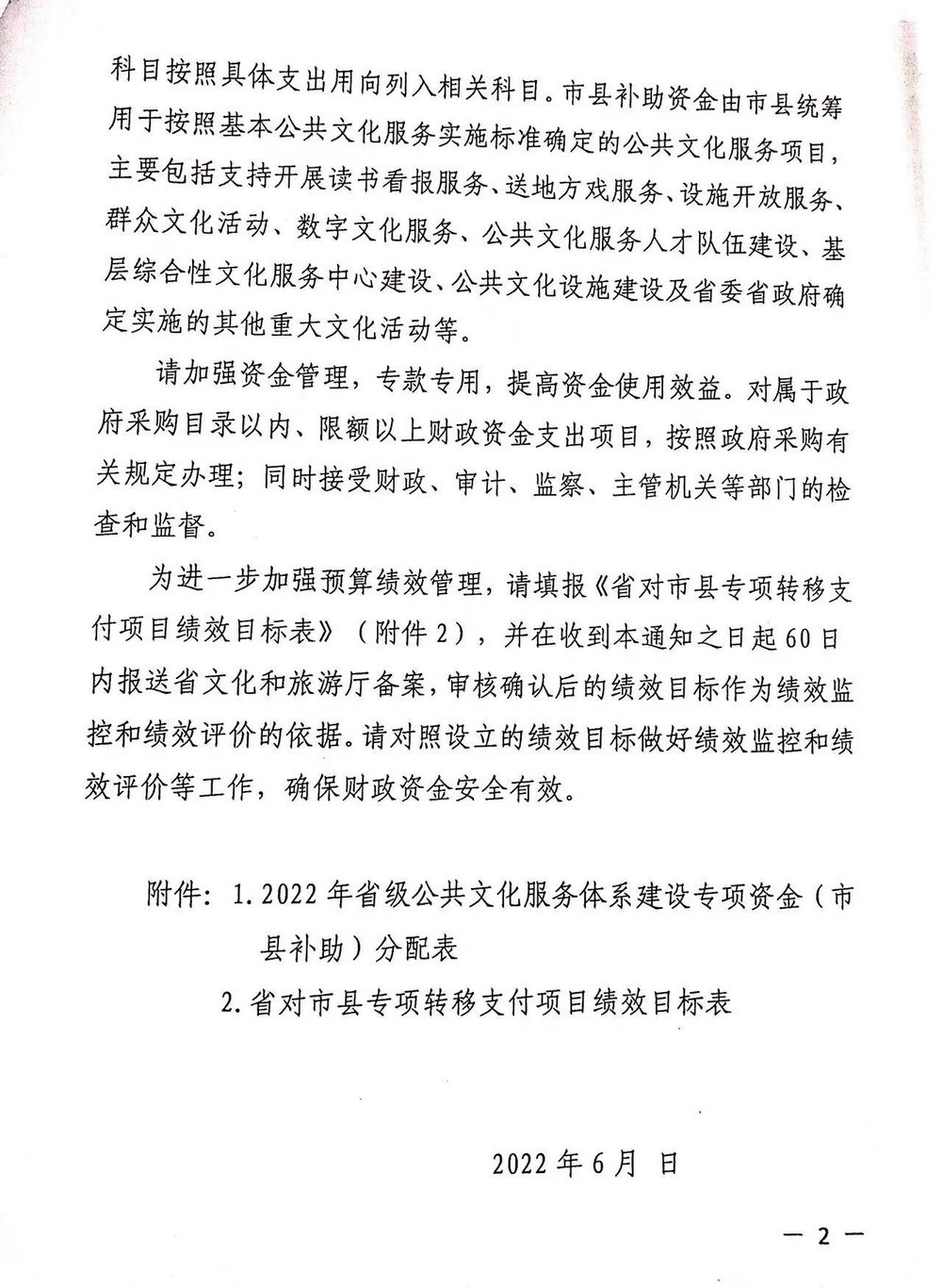 关于下达2022年省级公共文化服务体系建设专项资金(市县补助)