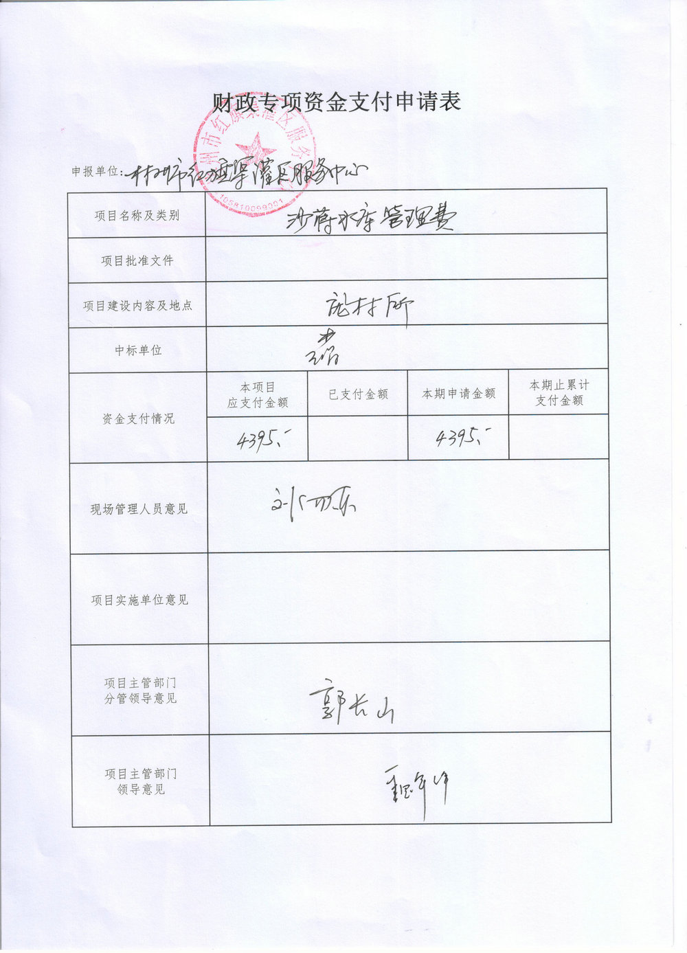 林州市红旗渠灌区服务中心沙蒋水库管理费支付公示
