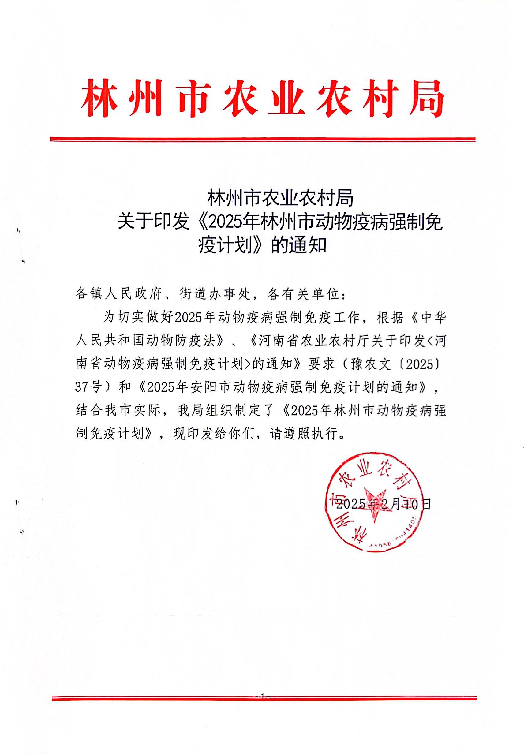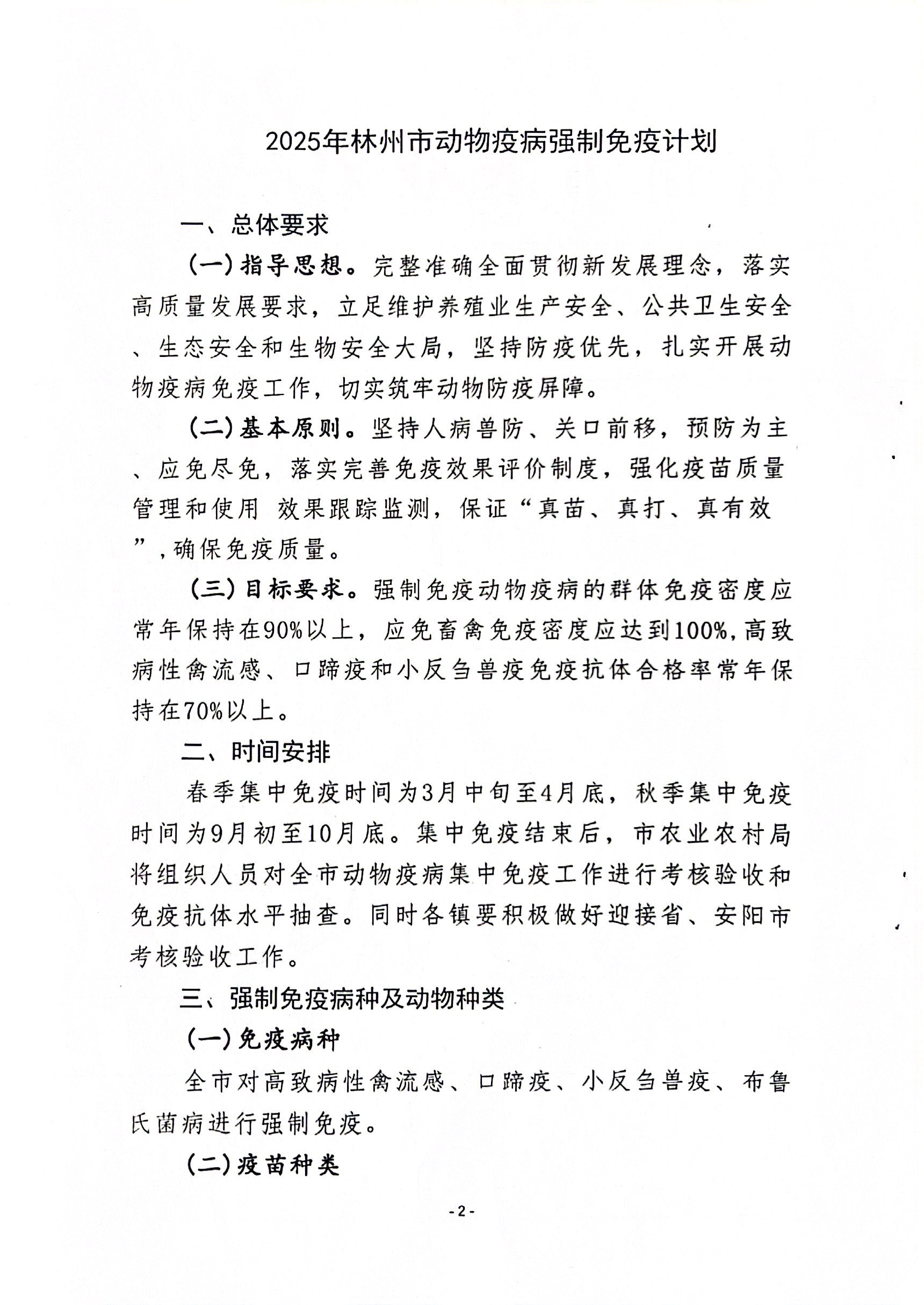 林州市2025年动物疫病强制免疫计划