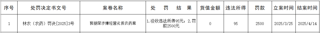 林州市农业农村局行政处罚公示