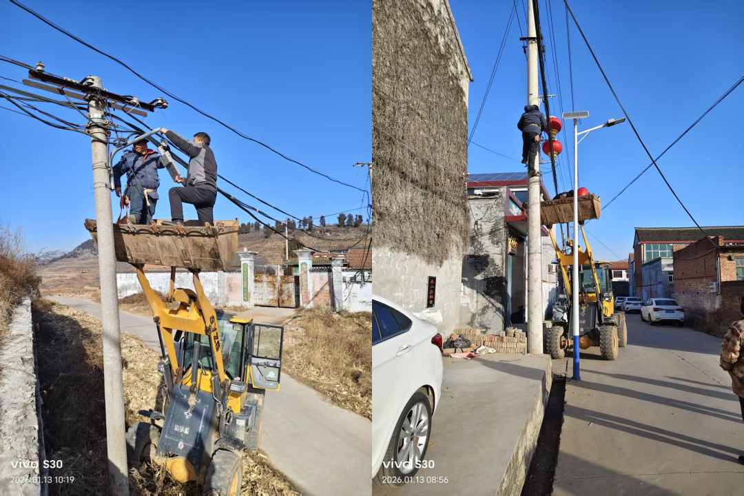 合脉掌村村民反映路灯损坏后,村干部连夜排查,次日全部更换。罗圈村突发停电,村干部配合电工抓紧抢修,十几分钟便恢复供电,并排查修复了10余个损坏路灯。