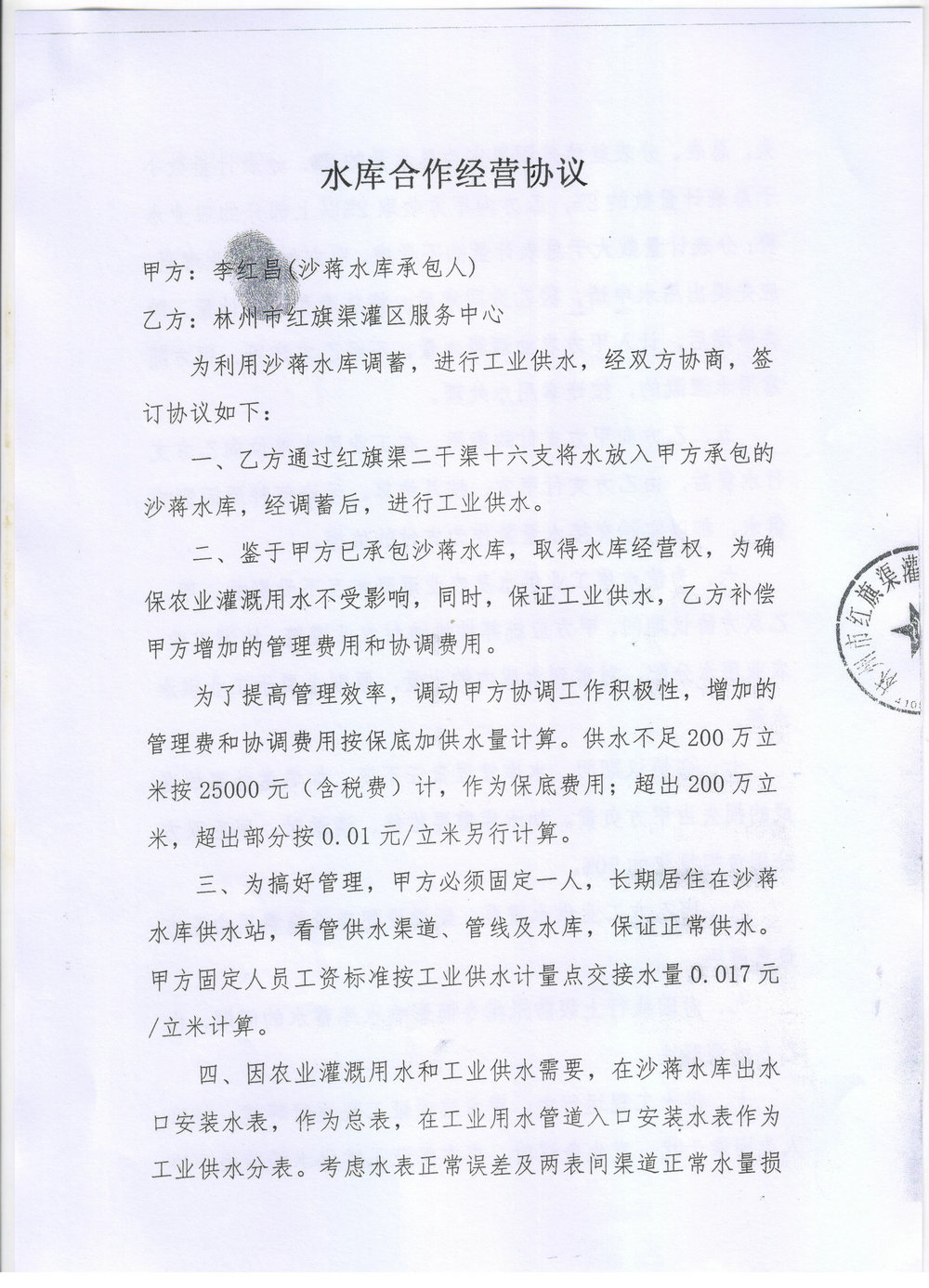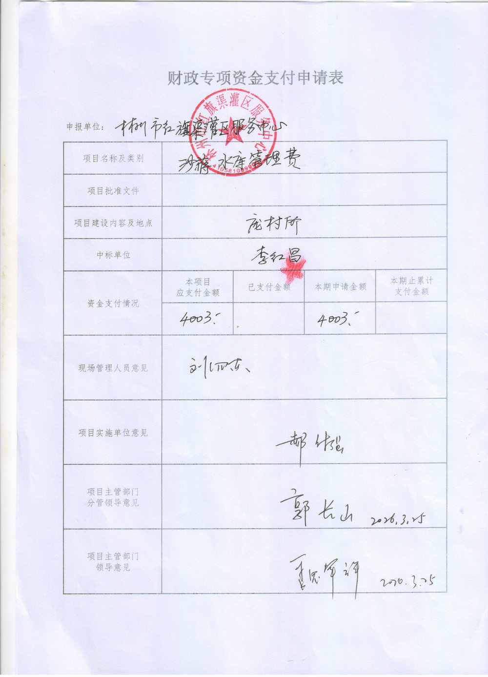 林州市红旗渠灌区服务中心沙蒋水库管理费支付公示